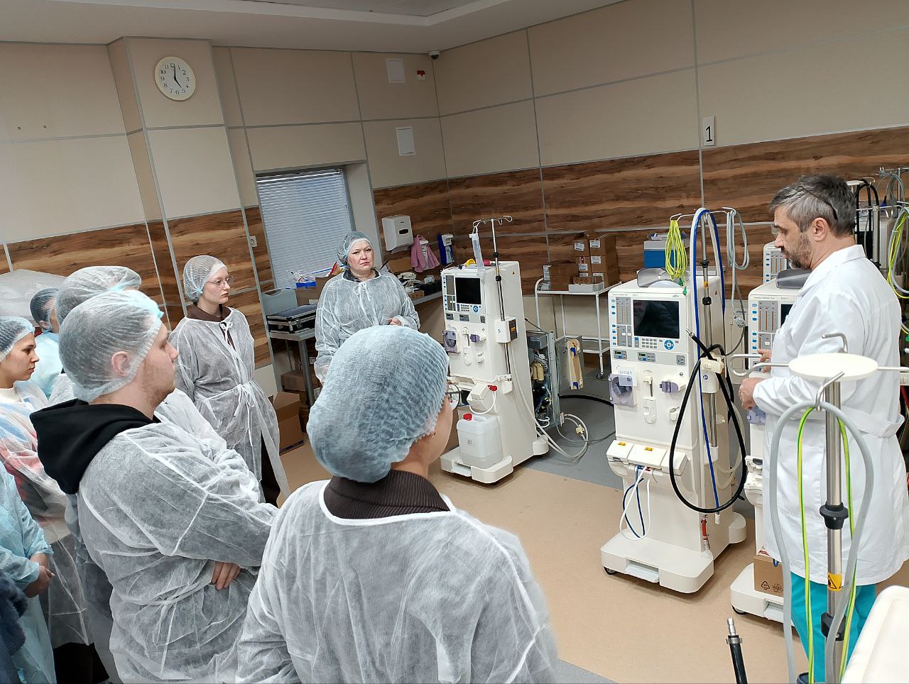 Экскурсия началась с подробного обзора принципов и особенностей работы жизненно важных биомедицинских систем, обеспечивающих очищение крови пациентов с почечной недостаточностью. Заведующий диализным центром Уфы Сергей Брюхов продемонстрировал современные модели диализаторов, их основные компоненты и рассказал о требованиях к их техническому обслуживанию и безопасности. Особое внимание уделялось вопросам интеграции медицинских информационных систем с оборудованием центра. Магистранты в области медицинской информатизации узнали о специализированных программных комплексах, обеспечивающих мониторинг состояния пациентов в реальном времени, а также о деталях автоматизации процессов сбора данных, обмена информацией между различными подразделениями медицинского учреждения.