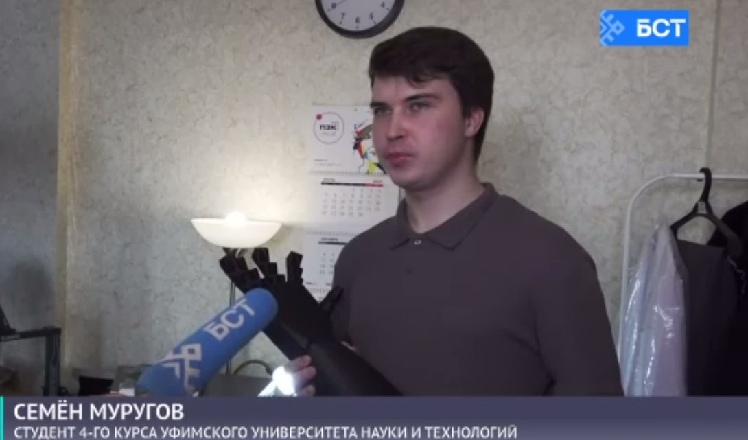 Студент нашей кафедры, Муругов Семён, обучающийся в группе БТС-412Б, стал победителем конкурса «Студенческий стартап» - он создал прототип протеза кисти руки.
