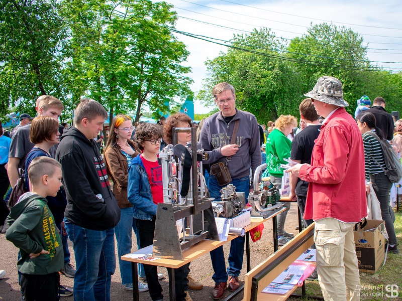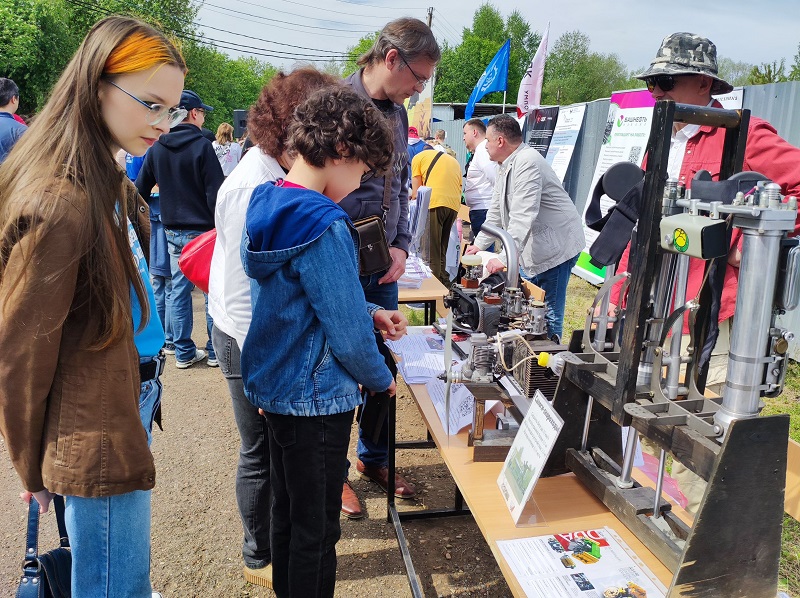 Также были представлены другие разработки кафедры, создаваемые с участием студентов: новый товар и новое направление двигателестроения - мотоскороходы для облегчения бега человека, двигатели с улучшенными парами трения микродуговым и искровым оксидированием, образец малоразмерного (переносного) двигателя с противоположно-движущимися поршнями и запатентованной настроенной системой выпуска, обеспечивающей повышение наполнения и мощности двигателя, снижение его шума выпуска и повышение функциональности при переноске; буклеты о новых разработанных совместно с ООО "ДДА" (г. Уфа) двигателях для авиации.
