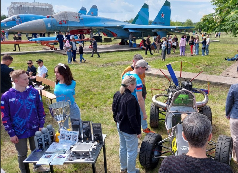 разработки студентов кафедры "Двигатели внутреннего сгорания" (ДВС), работающих в Студенческом конструкторском бюро (СКБ) "Формула Студент": гоночный аэро-автомобиль-болид "Стерх" с двумя двигателями и толкающим винтом,