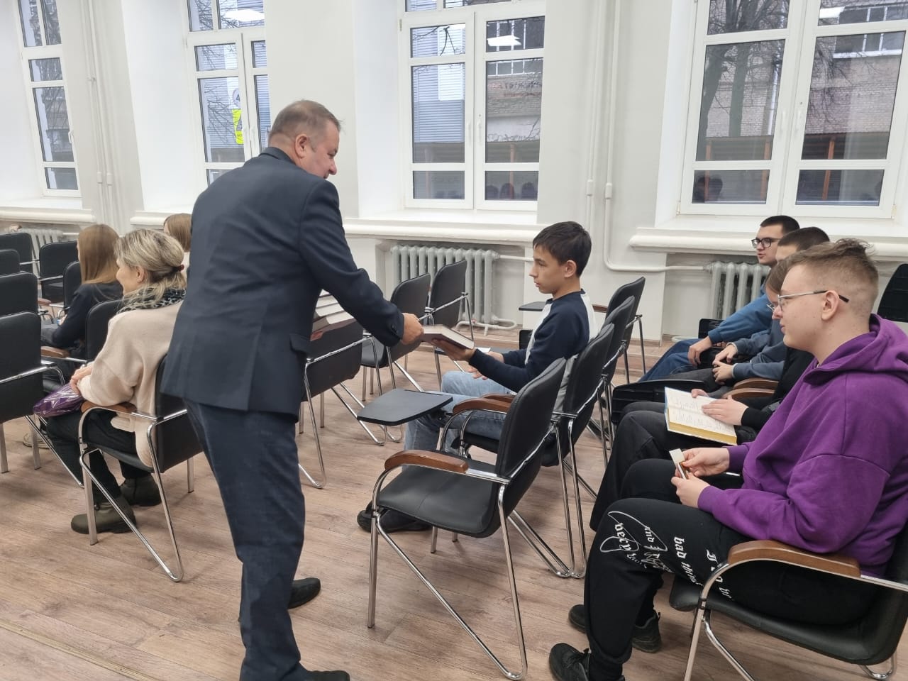 В завершение встречи организаторы мероприятия подарили школьникам учебники по социологии, этике, культурологии, политологии и иностранным языкам.