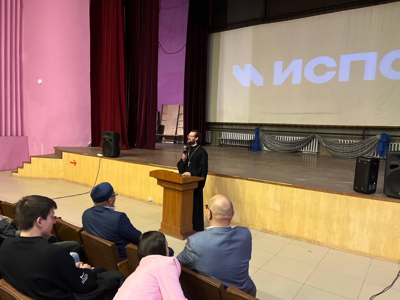 В рамках проекта «Наш общий дом – Россия» в формате «Открытый диалог» прошла встреча студентов института среднего профессионального образования Уфимского университета с директором Координационного центра Айратом Айдарбековым, иереем Дионисием Ефимовым – руководителем миссионерского отдела Уфимской епархии Русской православной церкви и Ермеком Шахметовым – заместителем директора Исламского колледжа им. М. Султановой.