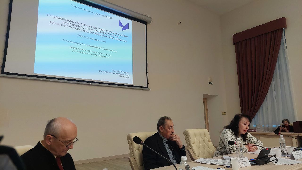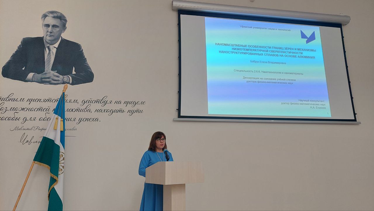 25 декабря состоялась успешная защита докторской диссертации Бобрук Елены Владимировны по специальности 2.6.6. Нанотехнологии и наноматериалы, физико-математические науки. Тема диссертации: "Наномасштабные особенности границ зерен и механизмы низкотемпературной сверхпластичности наноструктурированных сплавов на основе алюминия". Руководитель работы — Еникеев Нариман Айратович, главный научный сотрудник научно-исследовательской лаборатории «Металлы и сплавы при экстремальных воздействиях», профессор кафедры «Материаловедения и физики металлов» ФГБОУ ВО УУНиТ. Работа выполнена в ФГБОУ ВО УУНиТ.