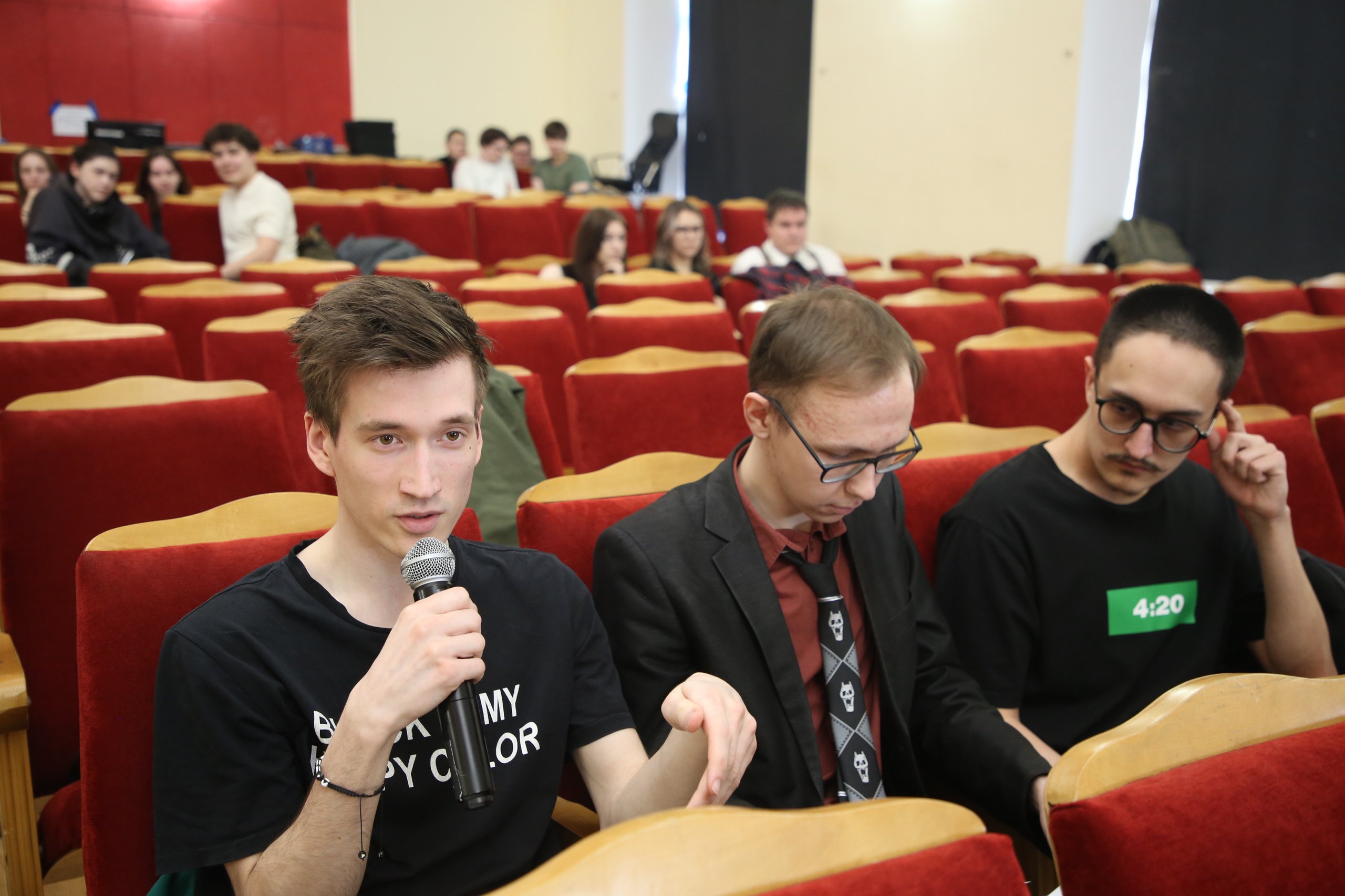 Вопросы ребятам задавал руководитель клуба Денис Мустаев (аспирантИнститута гуманитарных и социальных наук).