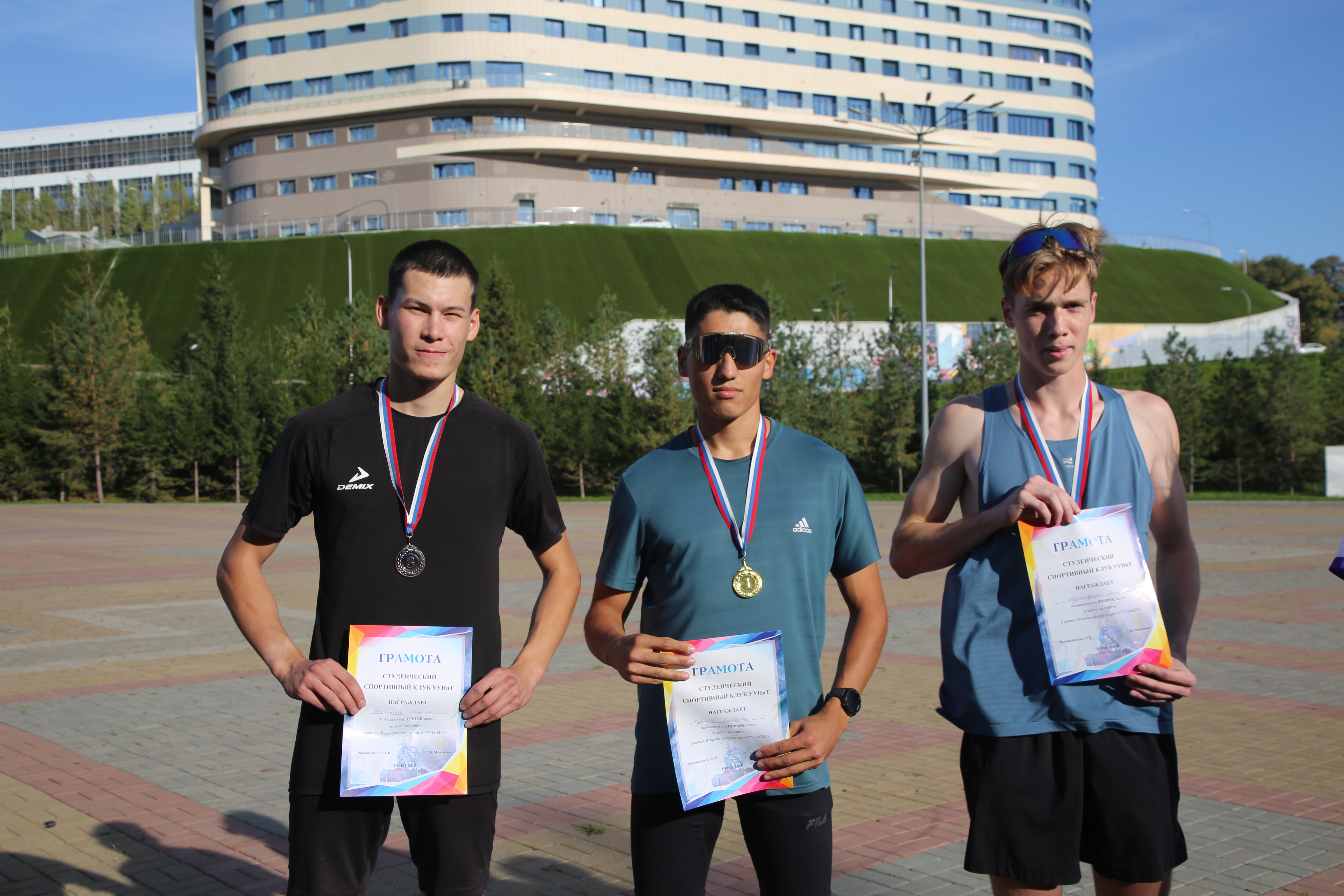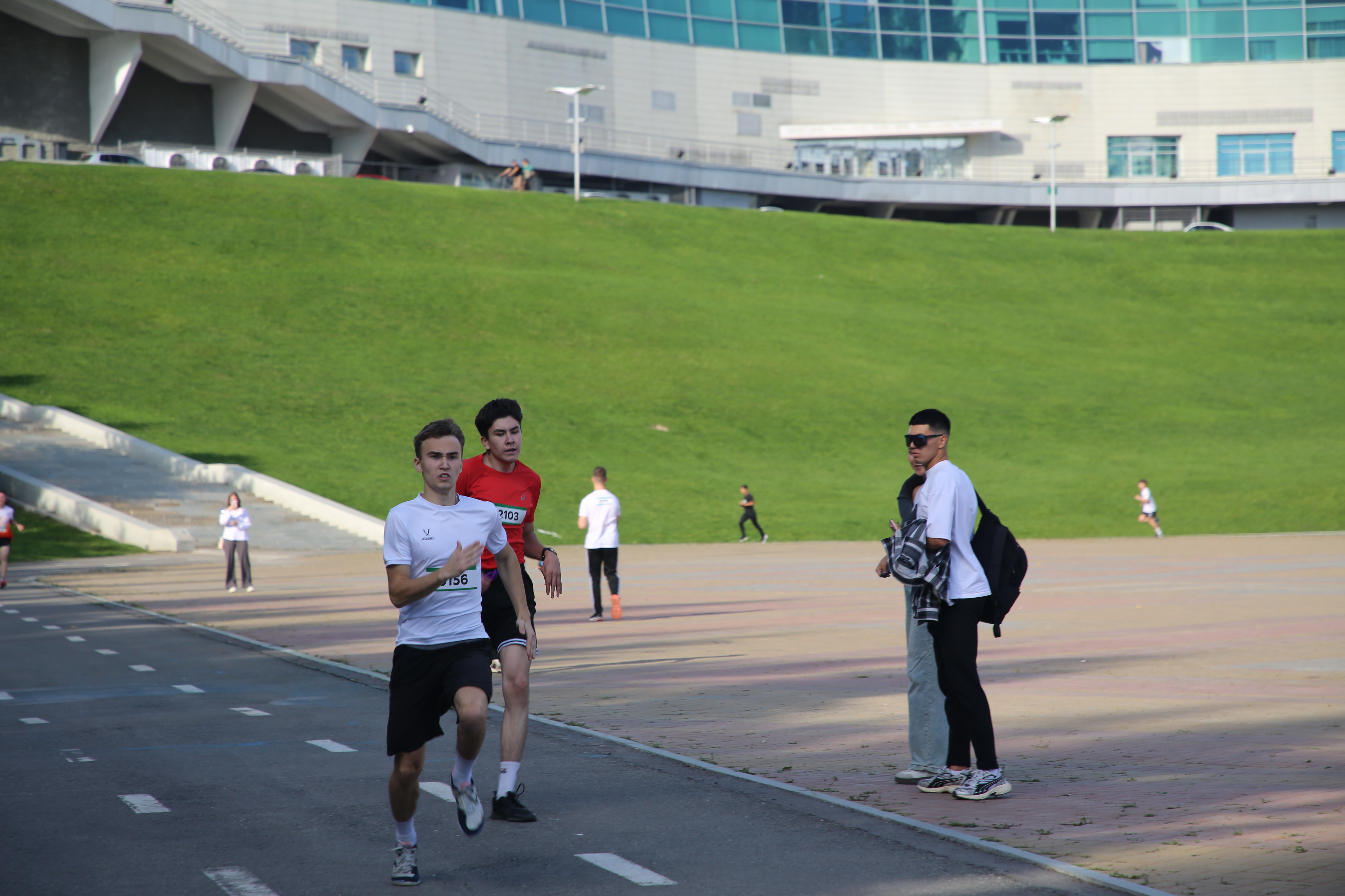 По-летнему теплая солнечная погода благоприятствовала состязанию на скорость. В забеге дистанцией 1000м среди девушек 1 место заняла Ангелина Михайлов (4 курс, Институт информатики, математики и робототехники), 2-е – Арина Макарова (3 курс, Институт химии и защиты в чрезвычайных ситуациях), 3-е – Альфия Сагитова (1 курс, ИХЗЧС).