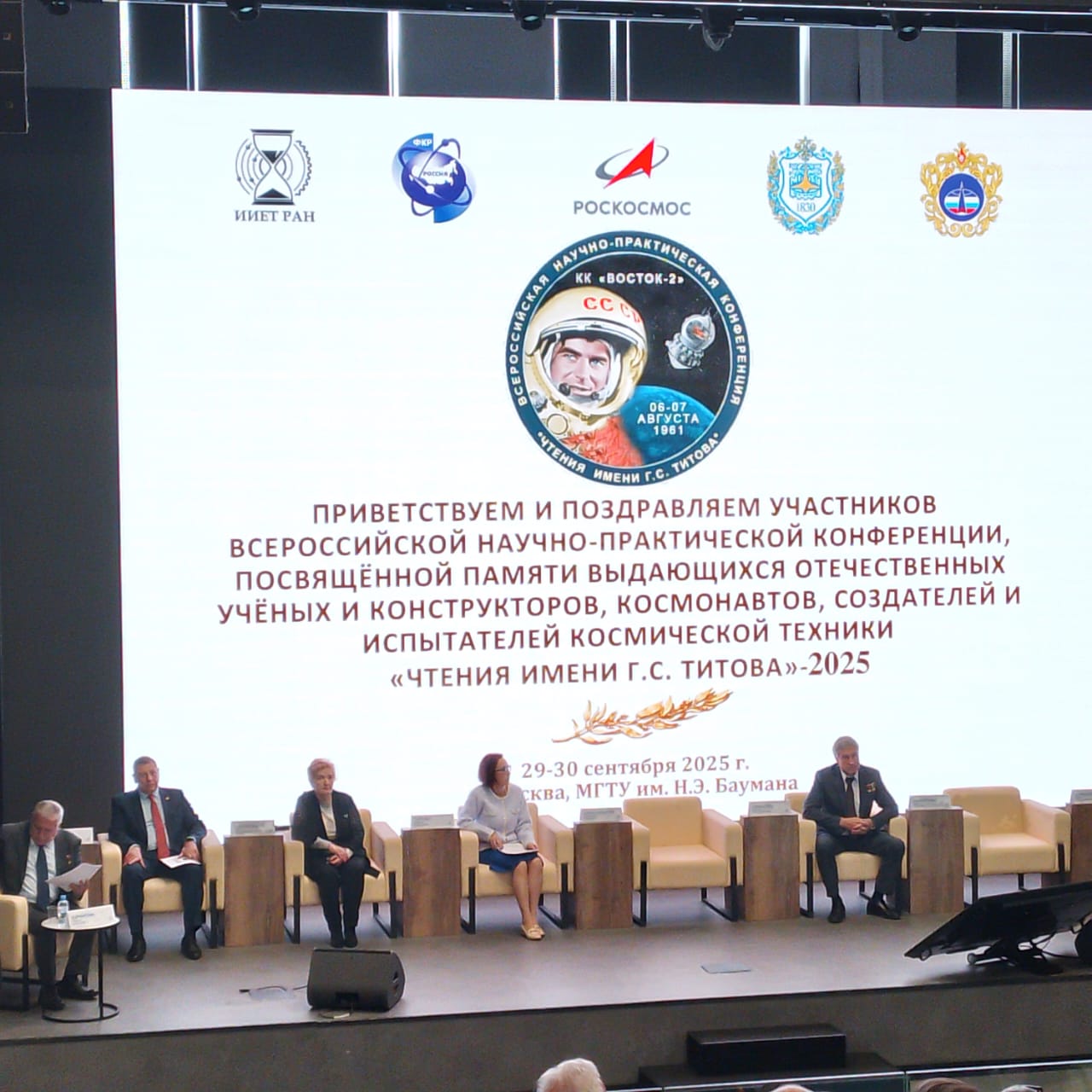 В сентябре 2025 года исполнилось 90 лет со дня рождения Германа Титова — второго космонавта планеты. К этой юбилейной дате была приурочена VI Всероссийская научно-практическая конференция «Чтения имени Г.С. Титова — 2025», посвящённая памяти выдающихся отечественных учёных, конструкторов, космонавтов, создателей и испытателей космической техники. Организаторами форума являются Федерация космонавтики России, Институт истории естествознания и техники им. С.И. Вавилова РАН, МГТУ им. Н.Э. Баумана и Госкорпорация «Роскосмос». Конференция состоялась в современном конгресс-центре МГТУ, впечатляющем своим футуристическим дизайном.