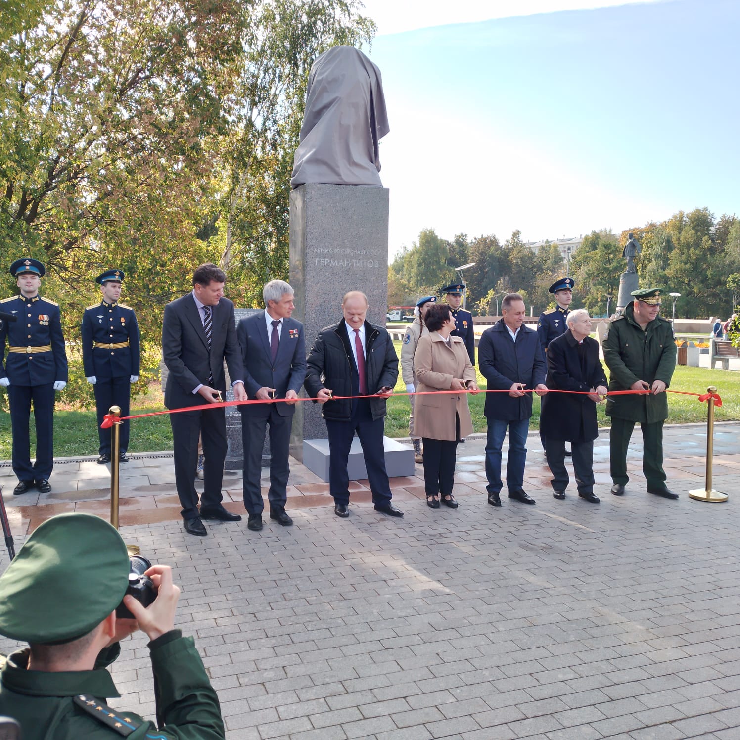 После завершения конференции на Аллее героев у Монумента покорителям космоса состоялось торжественное открытие бюста Германа Титова. В церемонии приняли участие лётчики-космонавты, политики, ветераны космических войск, вдова космонавта и его дочери. Бюст создан под руководством хорошо известного в нашей республике скульптора Салавата Щербакова – автора композиции на Советской площади города Уфы, посвящённой генералу Минигали Шаймуратову, и ряда других памятников.