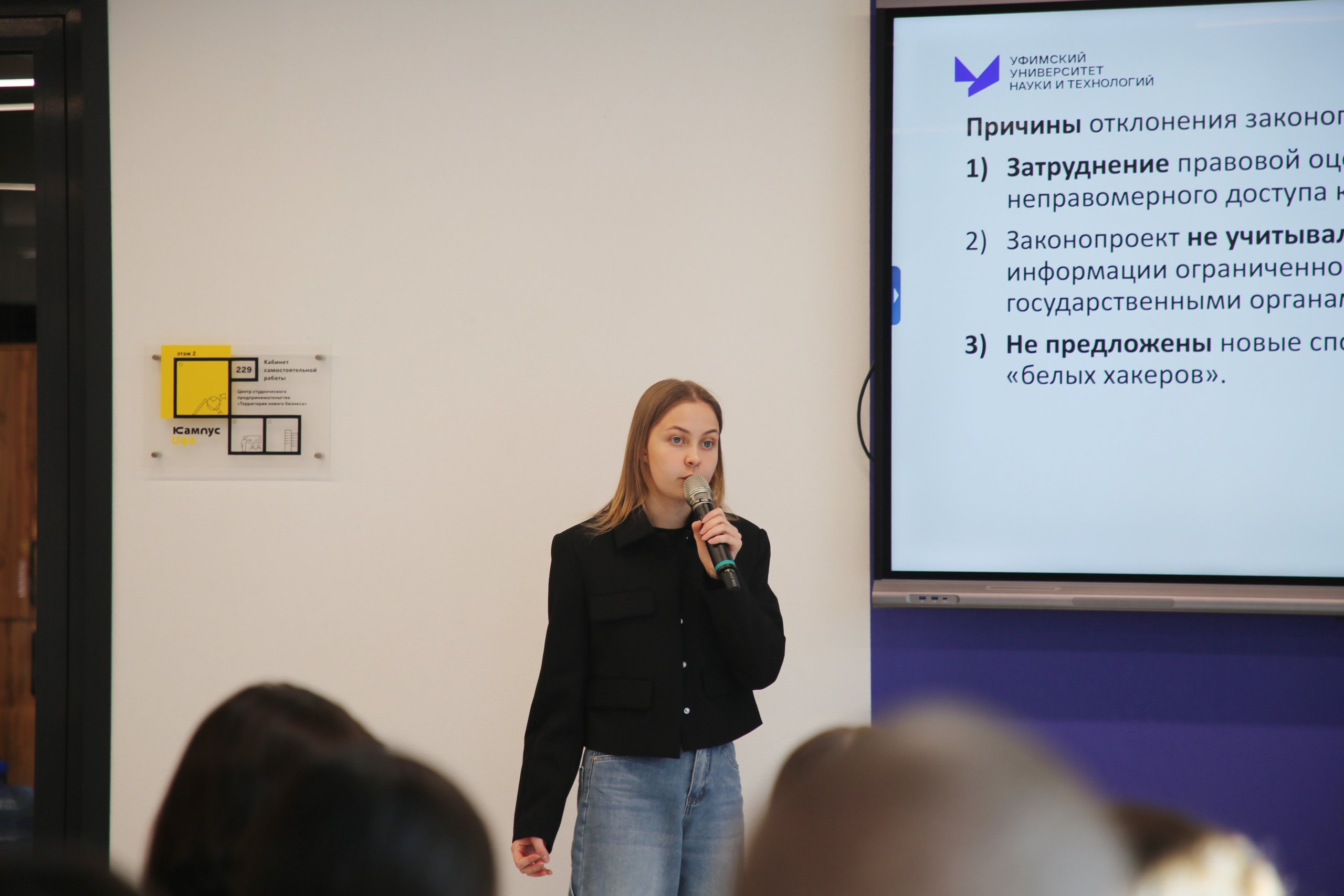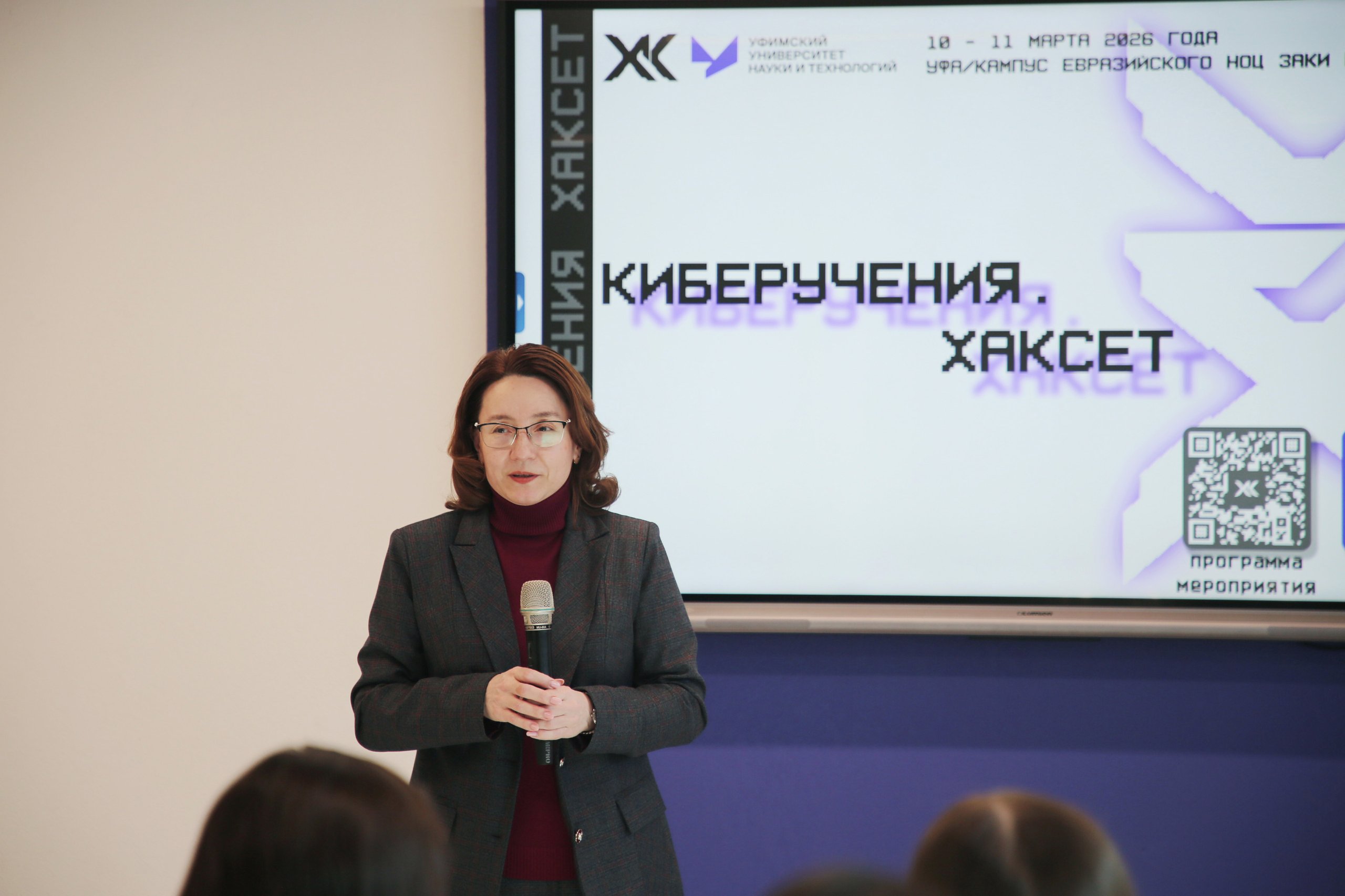 C приветственным словом и пожеланиями удачи перед ними выступила заведующий кафедрой управления информационной безопасностью ИИМРТ Альбина Исмагилова.