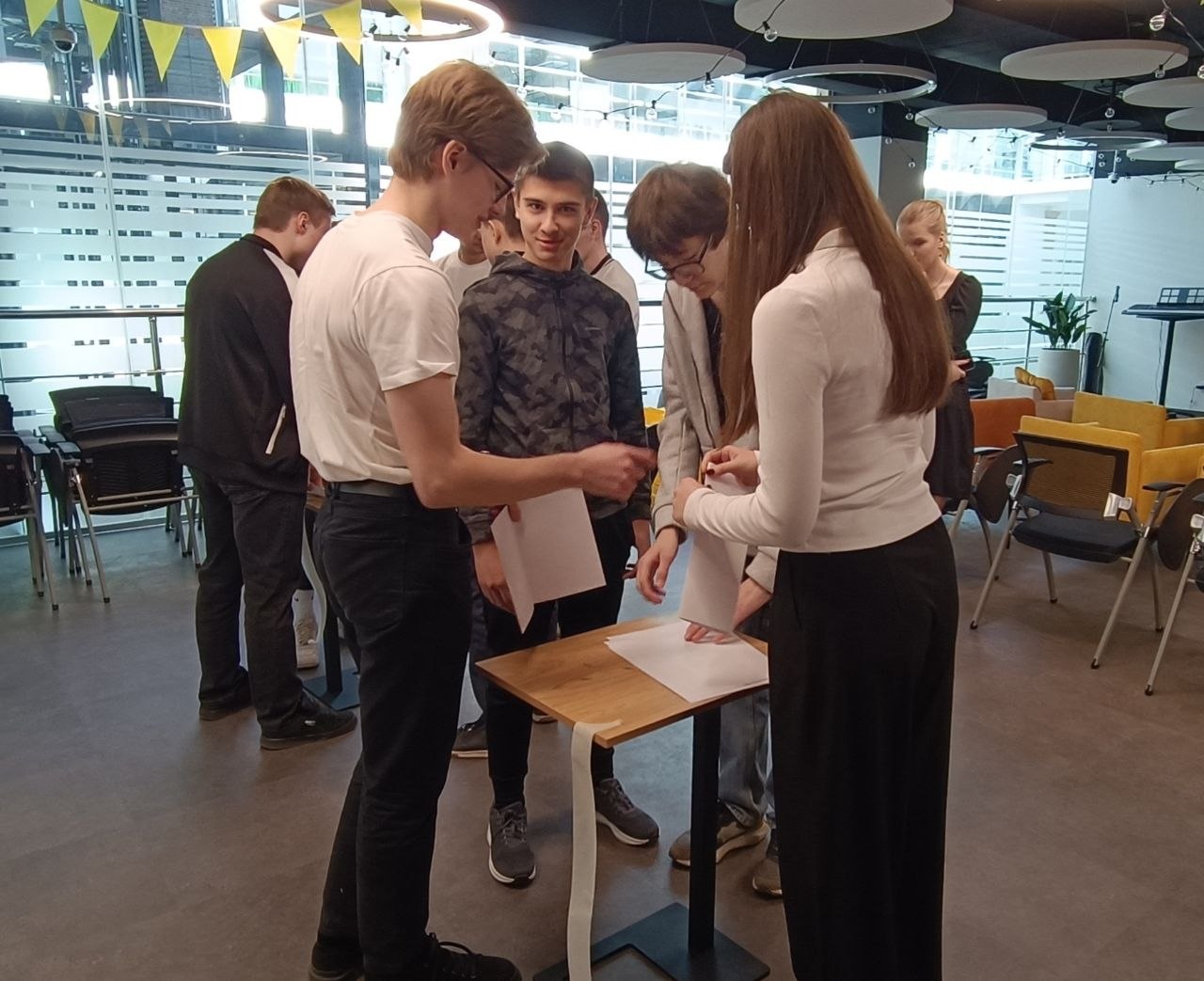 Ребята узнали о сотрудничестве Т-Технологий с ИИМРТ Уфимского университета и о том, что студентов института регулярно приглашают на стажировки, а затем и на работу. В завершение участники сыграли в командную игру «Башня», на примере которой познакомились со всеми этапами создания программных продуктов.