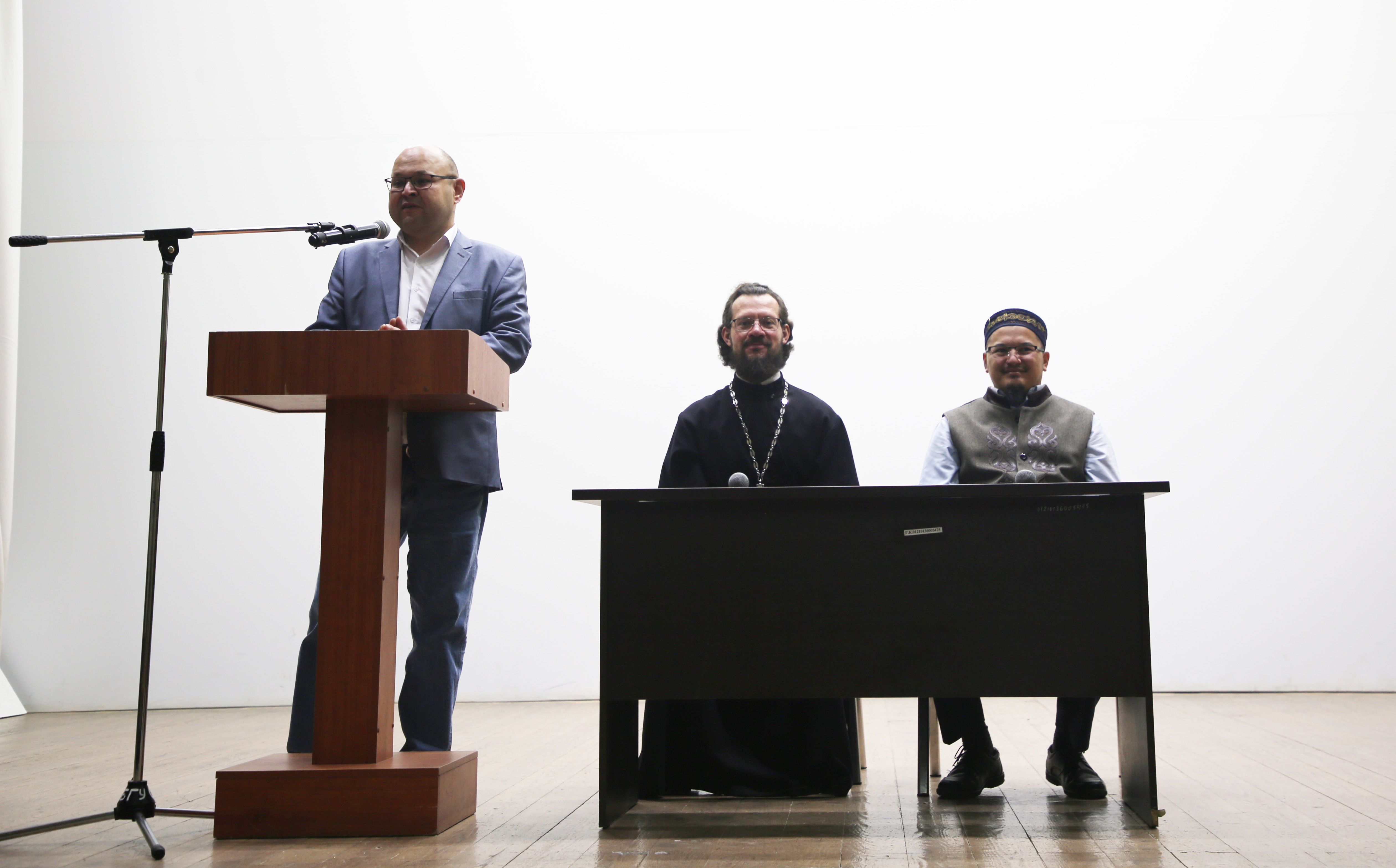В рамках проекта «Наш общий дом – Россия» в формате «Открытый диалог» в актовом зале Уфимского университета прошла встреча студентов с директором Координационного центра Айратом Айдарбековым, иереем Дионисием Ефимовым – руководителем миссионерского отдела Уфимской епархии Русской православной церкви и Ермеком Шахметовым – заместителем директора Исламского колледжа им. М. Султановой.