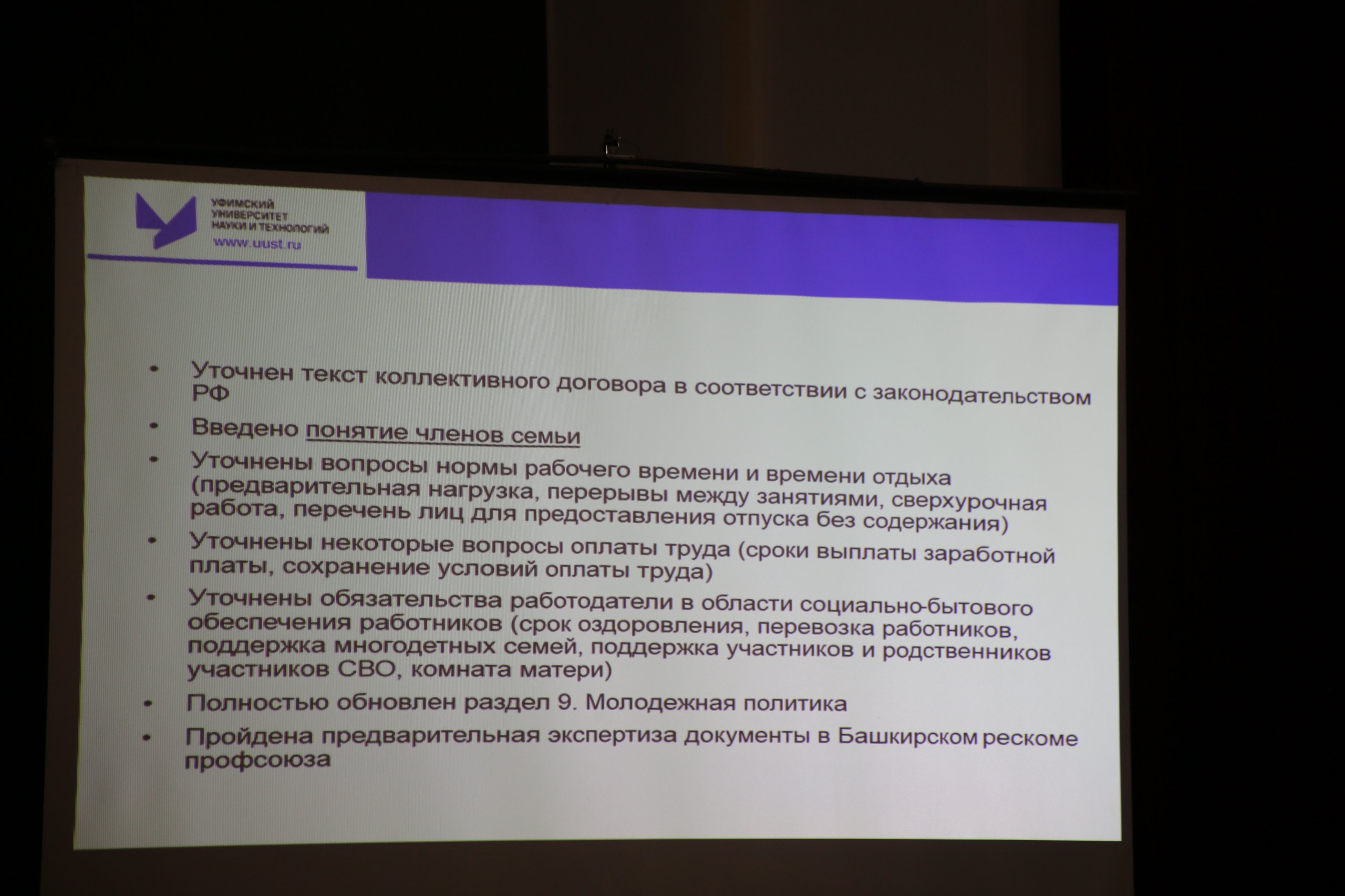 В повестке дня был рассмотрен один вопрос: обсуждение проекта и принятие решения о заключении коллективного договора УУНиТ на 2026-2028 гг.