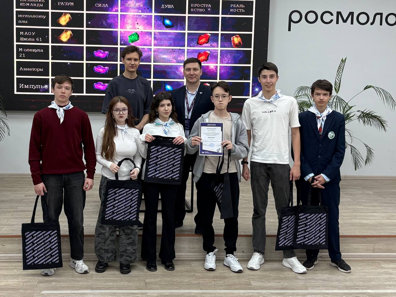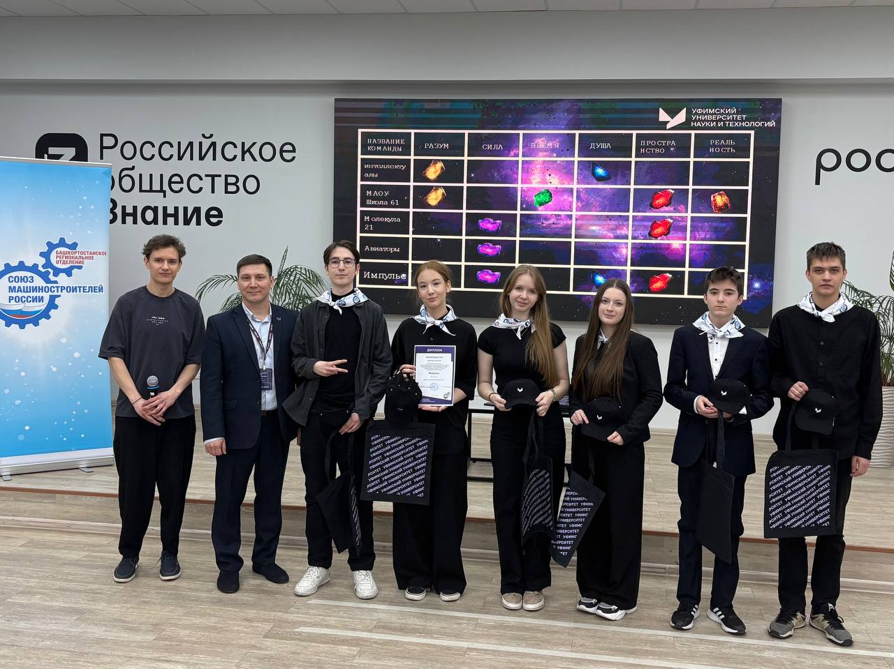 По итогам всех испытаний лидировала команда из школы №61. Победители и призеры получили памятные подарки от УУНиТ и от Союза машиностроителей России.