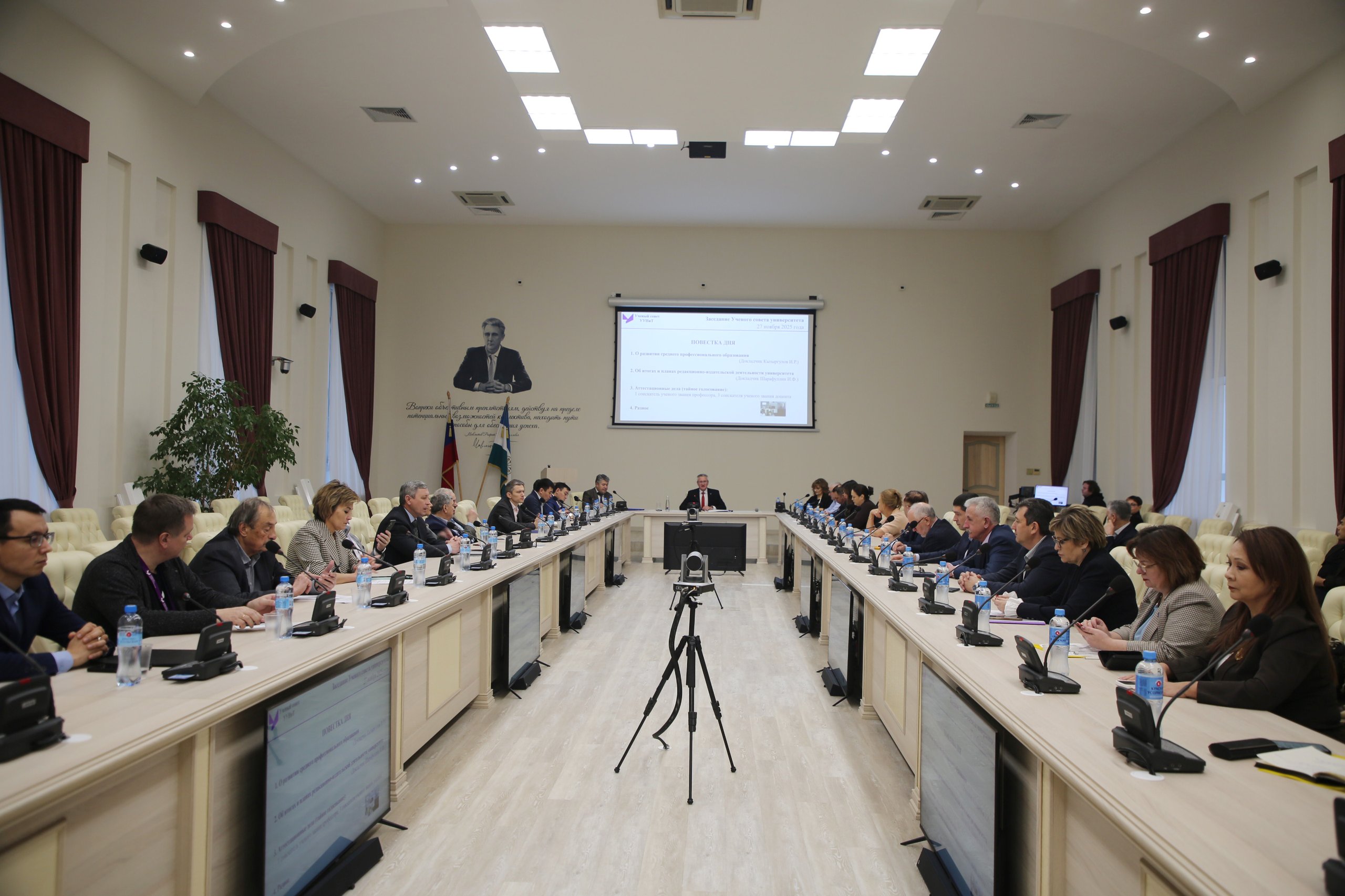 В Уфимском университете науки и технологий состоялось заседание Ученого совета. По традиции оно прошло в зале имени Р.Р.Мавлютова под председательством ректора Вадима Захарова.