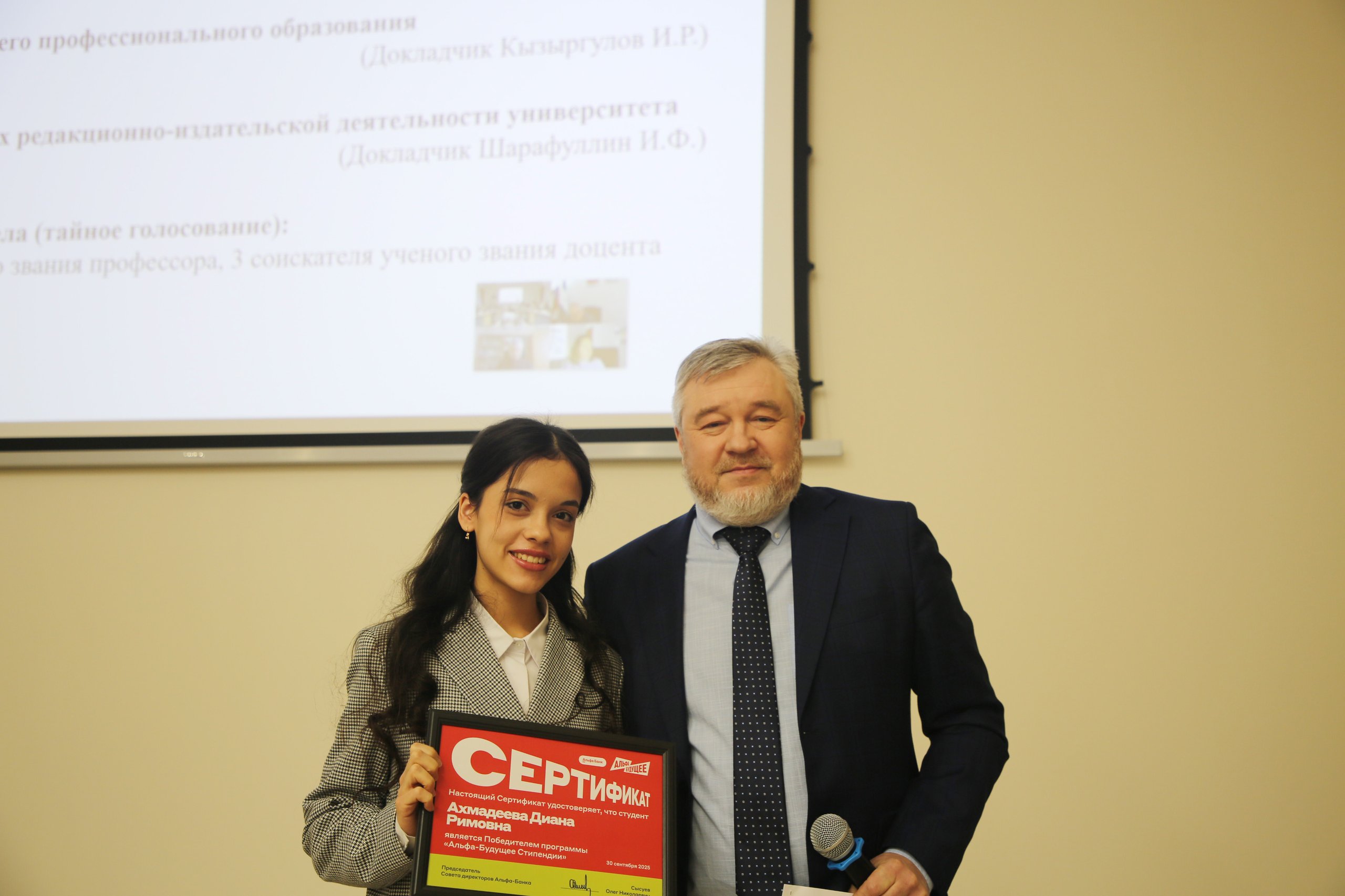 Заслуженные награды получили: Егорова (Масагутова) Елизавета (Высшая школа отечественной филологии, ИГСН); Ишмаев Феликс (ИП); Платонова Юлия (ИНЭБ); Попов Виктор (ИИМРТ); Ахмадеева Диана (ИИМРТ); аспирант Кириллов Максим.